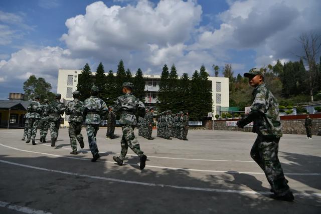 下午四点左右,军训课开始了。丑小鸭的孩子们跑回宿舍,换上迷彩军训服,听着生活老师的指令,迈着不算整齐的步伐,练习队列和军体拳。
