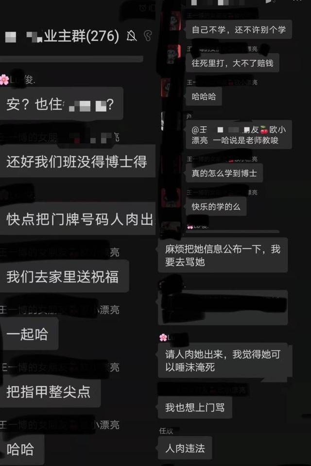 妞妞妈妈和很多家长都住同一个小区。业主群里,她也受到了攻击。