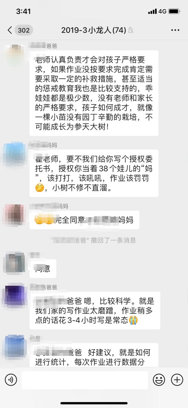 据说,翟老师在群里说,我不让她布置作业,家长们的情绪被调动起来了。