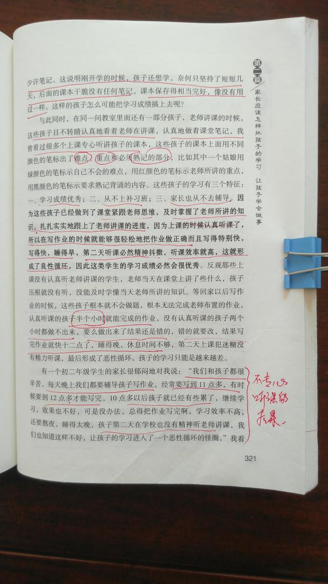 学习需要的是无缝对接一环紧扣一换,想要在考试的时候取得好成绩,那么首先要做到能够独立完成作业,试想一个学生连作业上面的题都不会做,又怎么可能在考试的时候把试卷上面的题做出来呢?然而想要独立完成作业必须要做到在课堂上专心听老师讲课,及时掌握当天老师所讲的知识,只要做到这一点那么这个学生就能够用最短的时间独立完成作业,如下图所示中的这位女孩子,她用不同颜色的笔标示出难点、重点和必须熟记的部分。