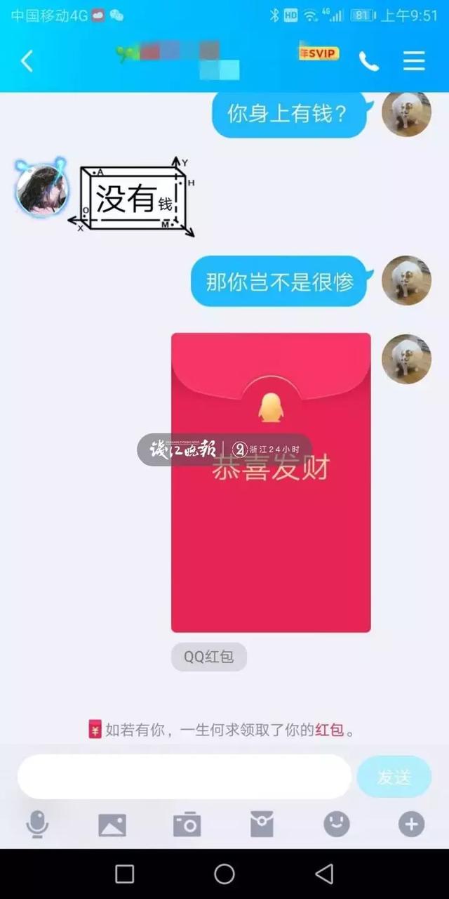 近乎一致的遭遇让小华觉得碰到了知己,跟郑睿的话也开始多了起来。因为知道小华身无分文,估计有一两顿饭没吃上了,“同是天涯沦落人”的郑睿故意发了几十块钱的红包给小华,叮嘱他去附近买点东西吃,别饿坏了。
