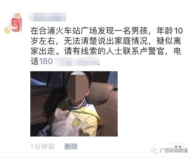 起初男孩支支吾吾答不上来,后来才告诉民警自己姓陈,今年10岁,当天是和妈妈一起从南宁前往北海。男孩还说,列车停靠合浦站时,自己跑下车想去购买零食,这才和家人走散的。由于男孩无法提供家庭信息,民警随即和合浦县110指挥中心联系,得到答复,并没有接到儿童走失的警情。在查看车站停靠列车的视频监控后,民警也没有发现有小孩下车的身影。