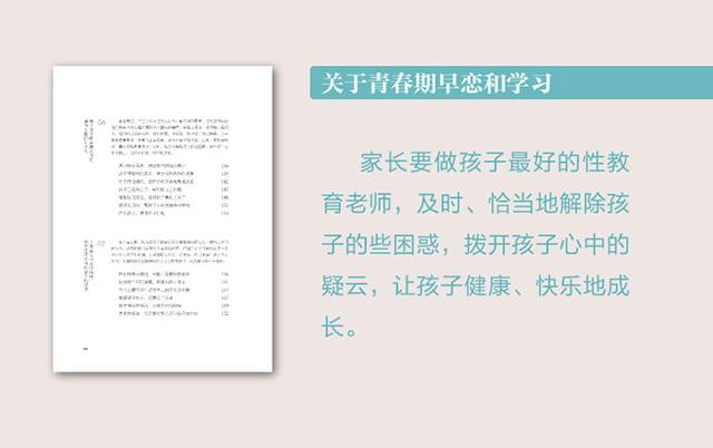 这本书通过由浅入深的方式,以真实和高效的解决方式,迅速帮助家长找到问题所在。万千家长不好意思开口的性教育和早恋问题,书中有更详细的讲解。