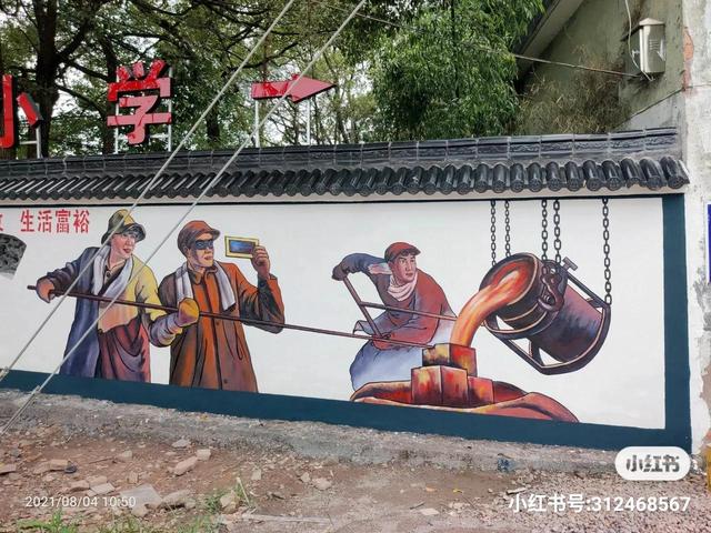 上面几幅画是今年9月份画的文化墙,夏天室外气温高达45度。冬天冷风吹日晒雨淋,喝水都要喝掉几桶。和工地上干活差不多。吃不消!