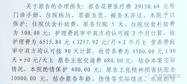 在庭审过程中,绿园法院在对原告马同学的损失认定过程中,医药费方面以医院的病例、票据等实际支出为准,而住院伙食费、护理费、营养费则按照合理费用计算。