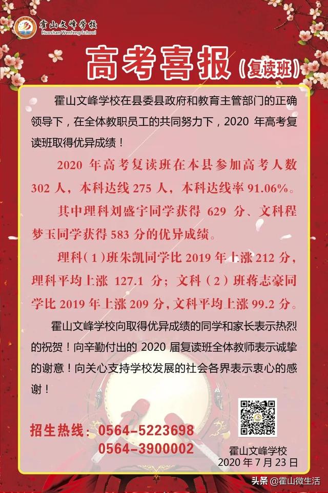 为满足广大有志青年的升学需求,2021年霍山文峰学校继续招收高考复习生。现将有关事项公示如下: