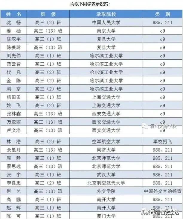 办学十三年,十届高考成绩辉煌,高考本科达线率从2011年首届的35,跃升到2020年的97、56,一本达线率6814,实现了十届高考十大跨越,达本率连续四年稳定在92以上,一大批学子先后被中国人民、中国科学技术、复旦、南京、上海交通、浙江、哈尔滨工业、西安交通、北京航空航天、武汉、北京师范、同济、厦门、外交学院、中国海洋、中国农业、西北工业、中国矿业、中国地质、中国石油、北京交通、北京邮电、北京理工、国防科技、南开、空军航空、海军航空、中国人民公安、上海财经、电子科技、中山、山东、华东政法、湖南、北京体育、中国美术学院、合肥工业、安徽等c9、9、8、5、2、11院校、省内外著名高校、军校录取,其中:2020年c9院校录取21人,985院校录取。42人,211院校录取125人。