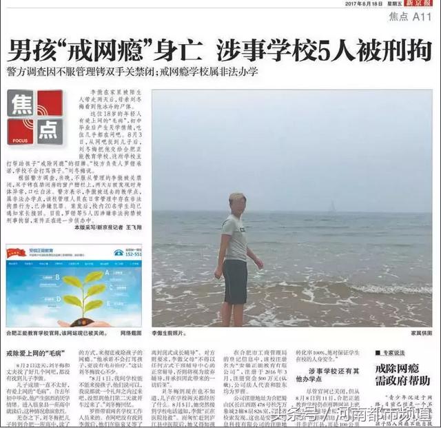 少年送去戒网瘾学校两天后死亡