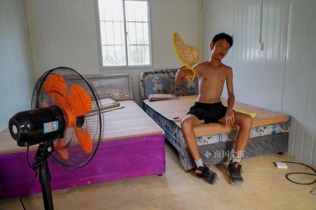 这是两父子栖身的集装箱,里面只有一台风扇,热的和蒸笼一样。