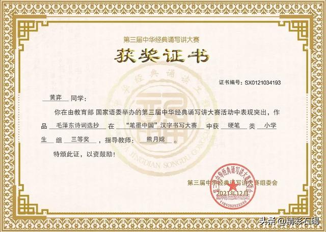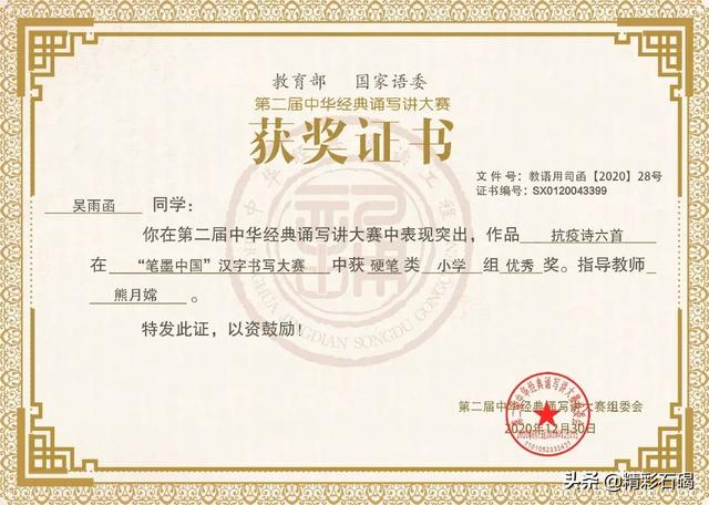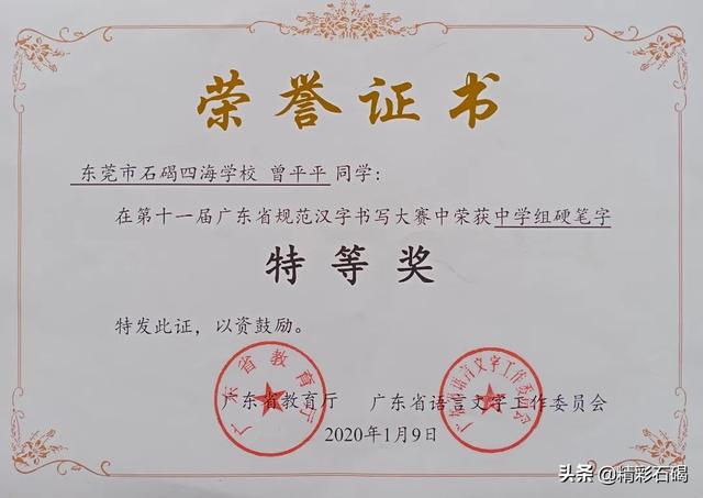 四海学子获奖证书