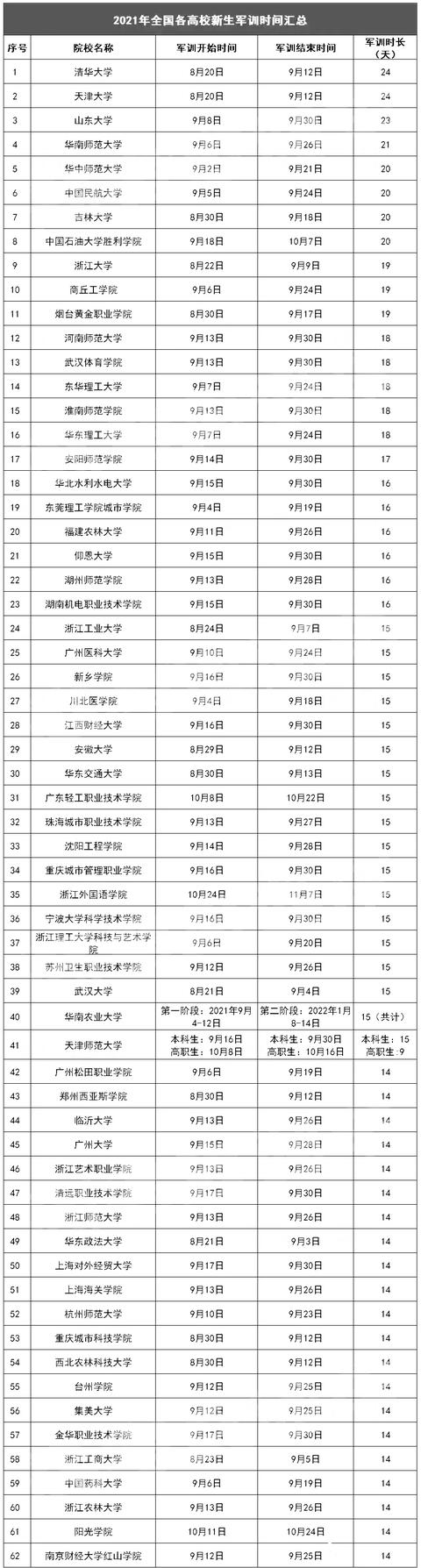 我们为大家整理了全国高校(部分)的新生军训时间,快来看看有没有你报考的学校!