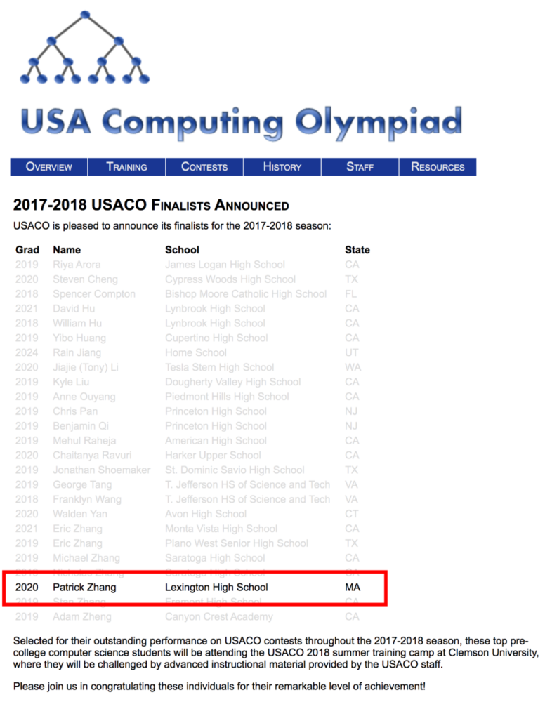 (一路打进USACO集训营,并被MIT录取的Patrick Zhang同学)