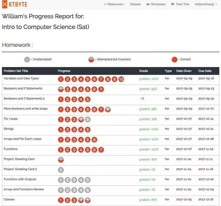 (图为KTBYTE学习进度报告示例)