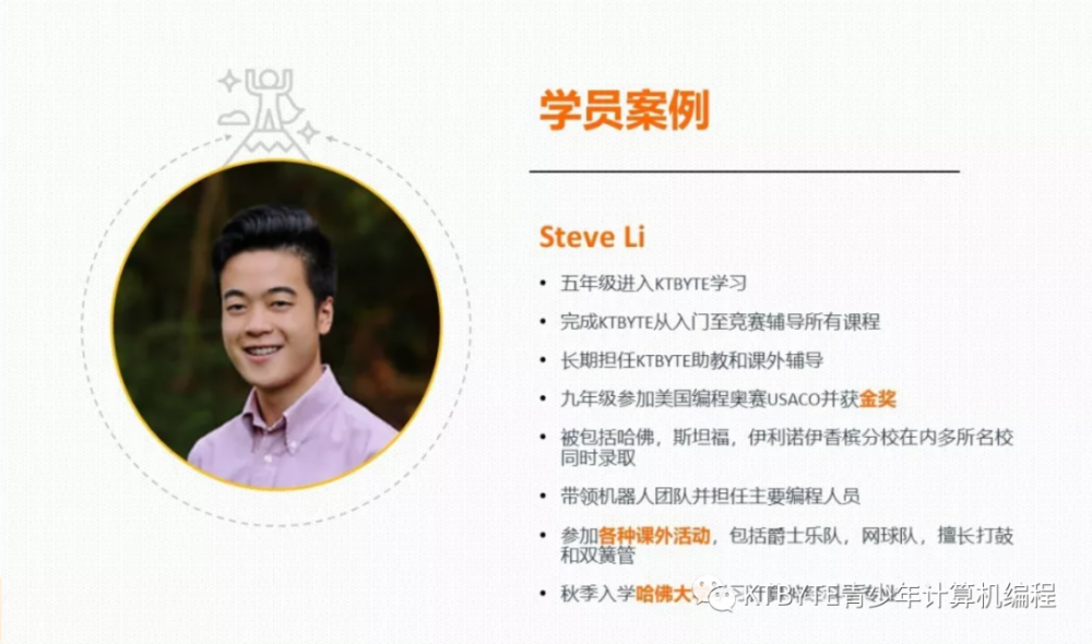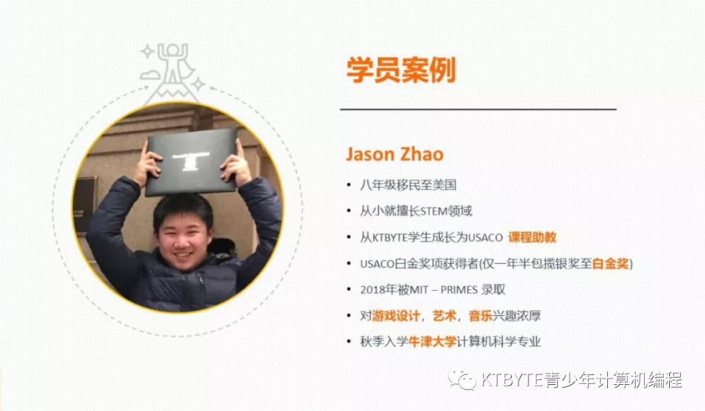 这个由数名美国康奈尔计算机专业的精英,在2014年创办的青少儿编程教育机构,是USACO(美国计算机奥林匹克竞赛)官方推荐的辅导机构之一,总部位于美国名校哈佛和MIT的所在地——波士顿。七年来,KTBYTE致力于为美国8到18岁的学生提供高质量、进阶式的计算机编程课程。这样体系化、专业化的教育受到很多美国家庭的青睐!