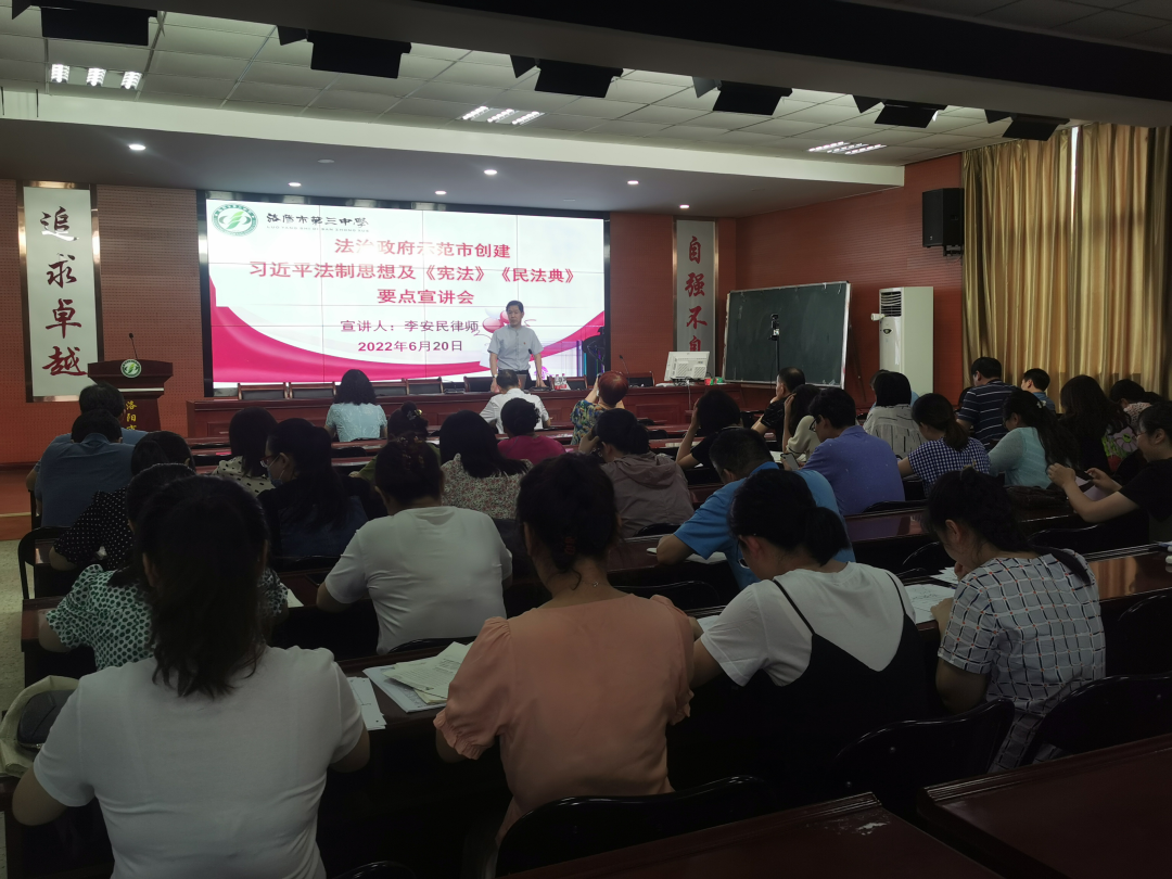 宣讲会由洛阳三中党委书记主持。他强调,一定要认真学习习近平法治思想,领会精神实质,积极参与法治政府创建活动,认真学习宪法和民法典,用宪法精神和法治思维规范言行和思想,为推进法治政府创建活动,做出教育人的努力。其它校领导和两个校区的教职工通过云端线上参会。