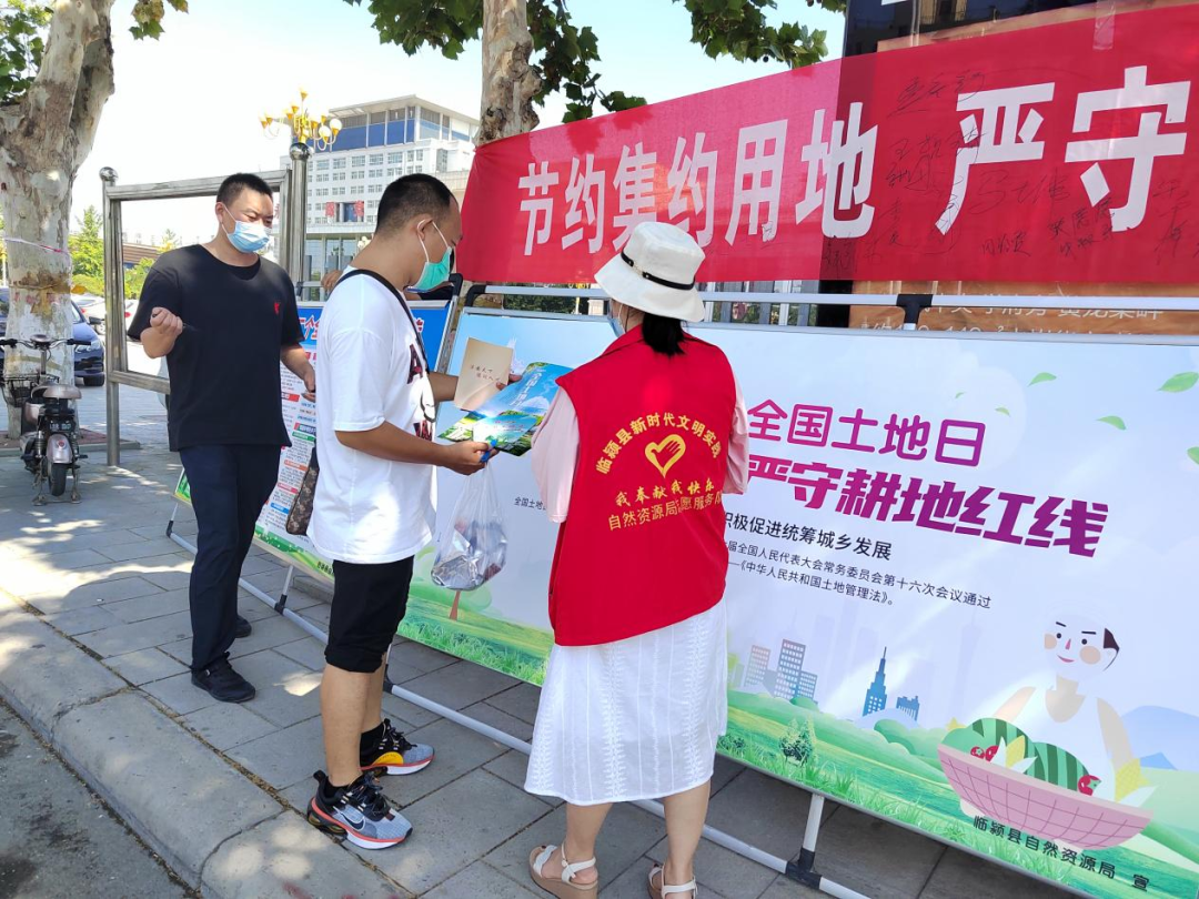 近日,临颍县组织青年普法志愿者开展以“节约集约用地 严守耕地红线”为主题的宣传活动。