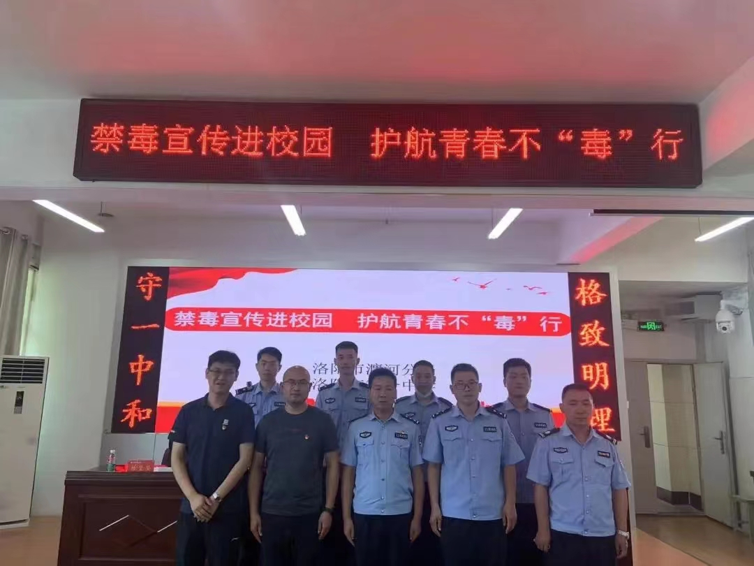 在第35个国际禁毒日来临之际,洛阳市公安局瀍河分局禁毒大队与洛阳市强制戒毒所的青年普法志愿者在洛阳市一中组织开展禁毒宣传活动。