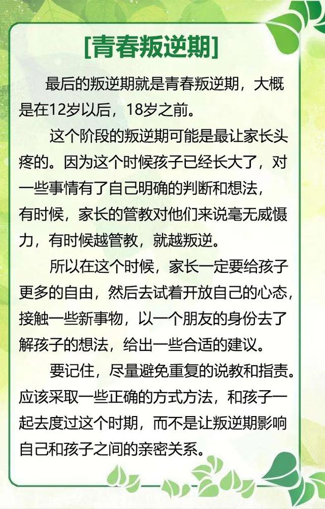 不同的孩子有着不同的叛逆期,这是每个孩子成长必须经历的过程。