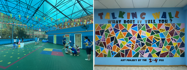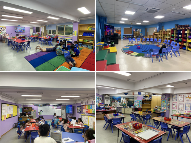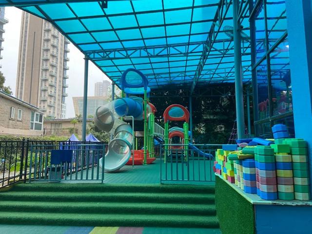 幼儿园班级学生人数在12-18人,目前学位非常紧张。每个教室里,教具和教材都是满满当当的,教室的设计都是老师自己动手完成。不过因为教室空间面积和室内设计的原因,教室采光是有些差的。也有一些家长认为户外活动场地太局限了,校方也表示目前在沟通小学部对面操场的使用。