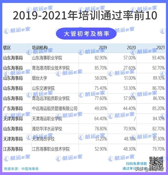 ③山东地区:威海职业学院、潍坊华洋水运学校、烟台海员职业中等专业学校通过率都是不错的,开班也比较多。