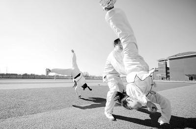 山东省无棣县棣丰街道中心小学五年级的学生们利用体育课和课间时间学习传承地方武术“点子拳”。高士东摄/光明图片