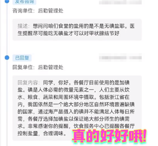 而且最可爱的是本校的生针对学校里存在的一些问题也提出了自己的看法,甚至食堂里面的菜咸不咸肉多不多这种问题也提了出来,希望学校食堂可以进一步改变口味。