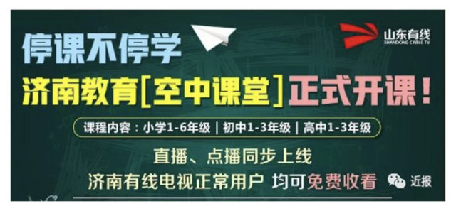 ●济南有线直播频道(不含历城区、章丘区):111、112频道,211—220频道,播放小学、初中、高中12个年级的教学内容。