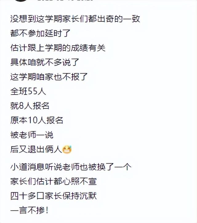 全班55人,共8人报名延时服务!难道延时托管要散伙